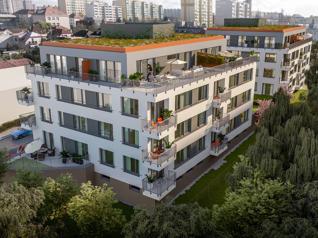 Moderní architektura dvou viladomů zaujme svou střídmě zvolenou fasádou, která kombinuje elegantní odstíny šedé, antracitu a světlé barvy. Každý z domů skrývá maximálně dvacet bytů rozprostřených na čtyřech podlažích. Zelené střechy domů dodávají projektu ekologický nádech a harmonicky zapadají do okolní krajiny.